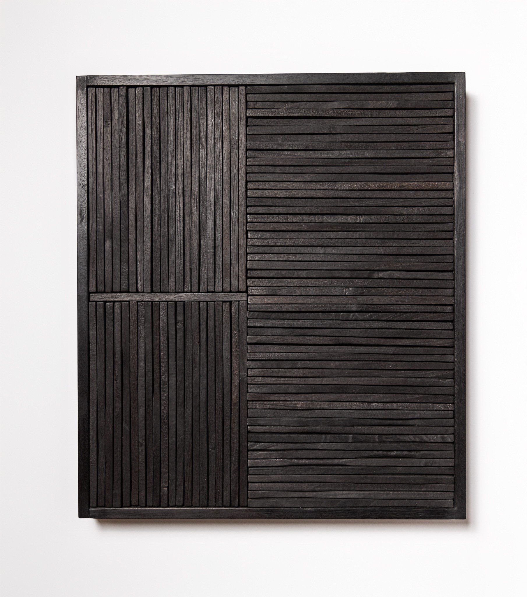 Birte Larsen, Calm, 2025, reconfigured teak and mahogany on birch plywood, 72 x 63.3 x 6 cm