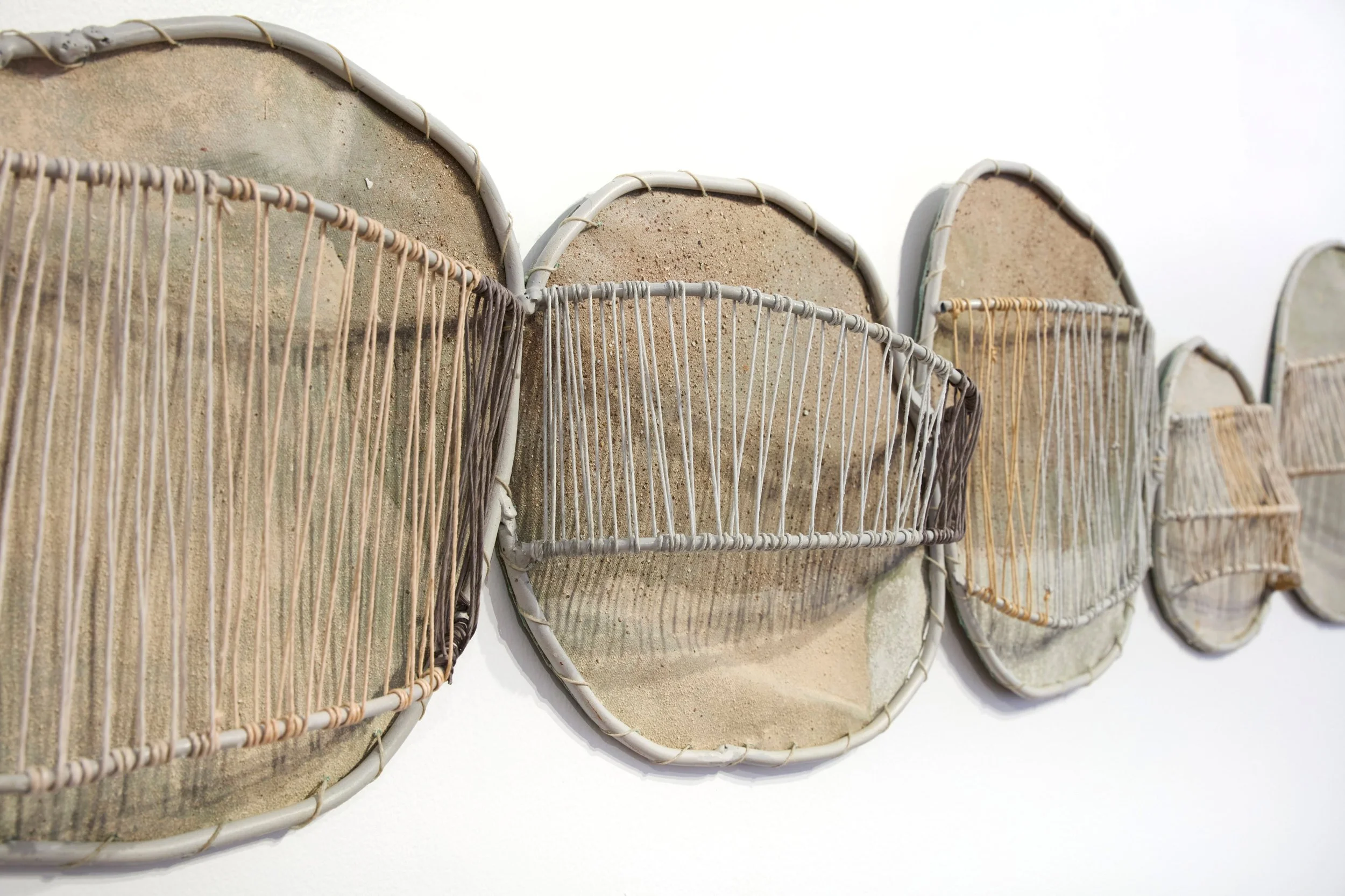 Quilted Mud Map, 2022, Carex (Sedge) mild steel, ground earth pigment, binder, sealer, 105 x 95 x 6cm (Detail)