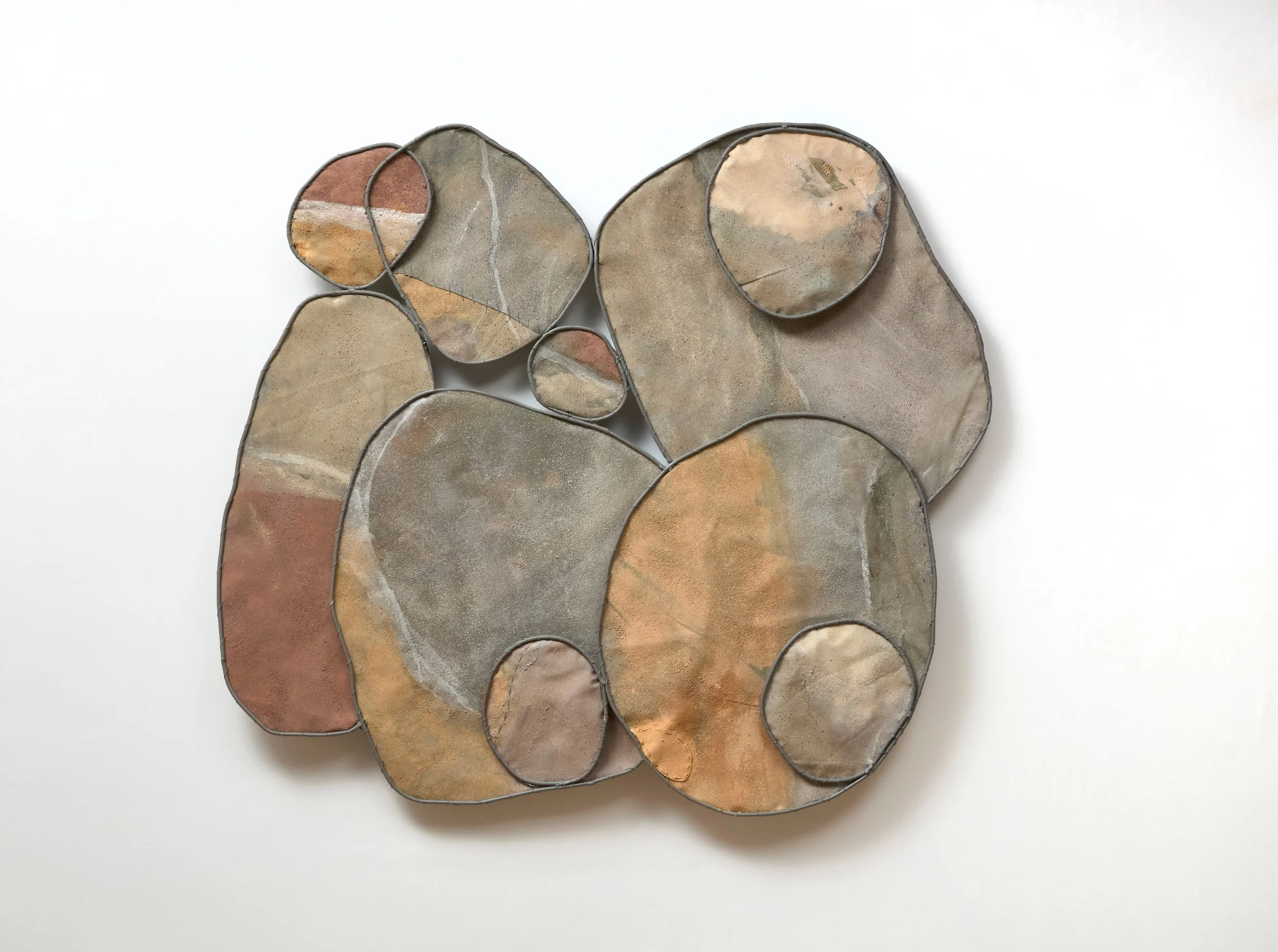 Quilted Mud Map, 2022, Carex (Sedge) mild steel, ground earth pigment, binder, sealer, 105 x 95 x 6cm