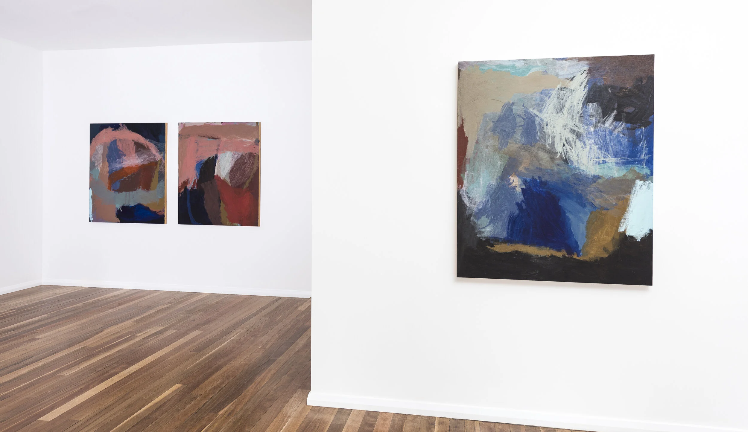 Imbi's work is largely inspired by the experience and memory of the Australian landscape, finding expression in its myriad forms, patterns, patinas, contours and colours. Her abstract paintings are intuitive responses to these multiple elements, overlaid with juxtapositions of opaque and translucent layers, interspersed with expressive marks of wild colours.