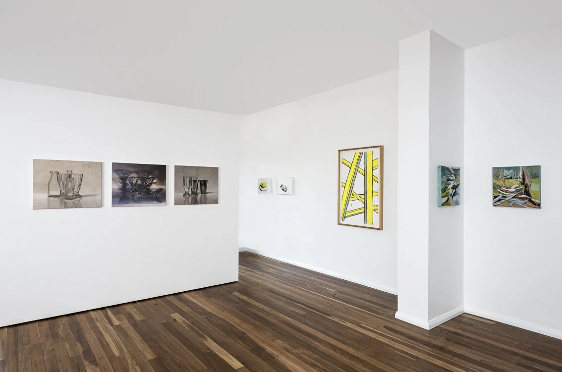 Dean Brown is a Sydney based painter and printmaker known for his formal rendering of figures and objects that contain a characteristic stillness and speak to moments in time. In Brown’s paintings, there are two central components: the form and its shadow. Like a sundial, the shadow is cast onto vacant space and endows presence and drama onto the subject, creating a noir-like theatricality unique to still life painting.