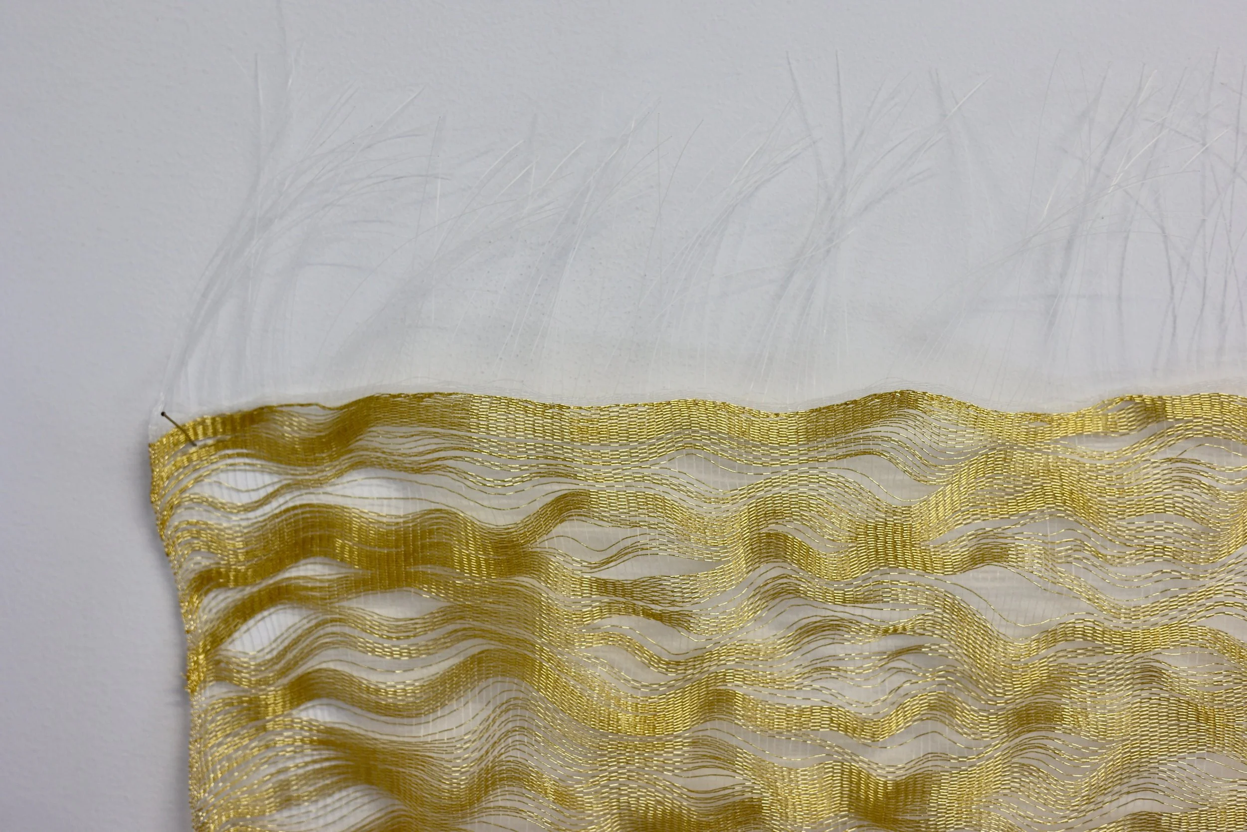 Hannah Cooper, Topographies of Light (loom sketch), 2024, Nylon Monofilament, gold leaf thread, 70 x 33 cm (detail)