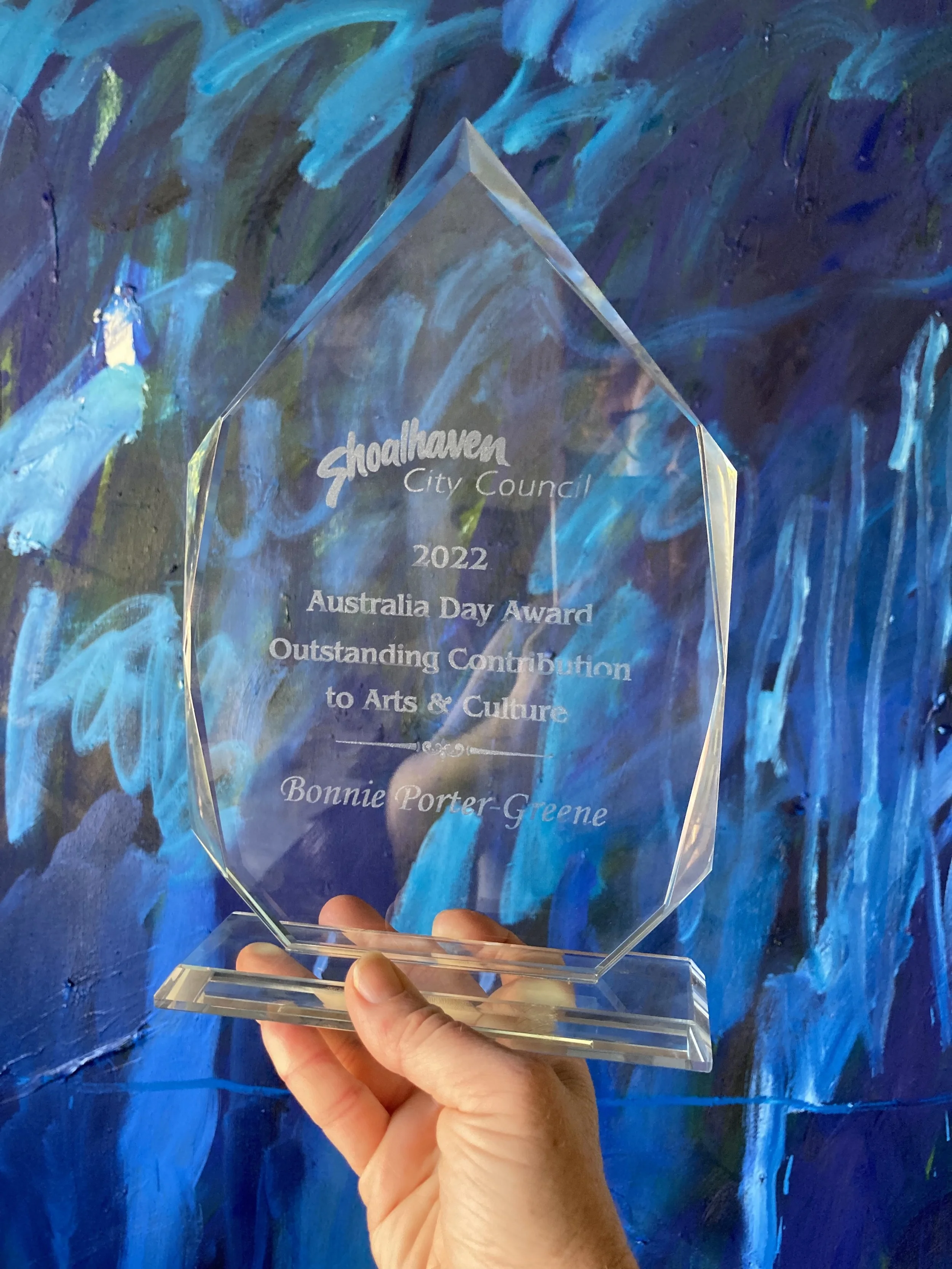 Congratulations to Bonnie Porter Greene on being awarded the Australia Day award for Outstanding contribution to Shoalhaven’s Arts and Culture